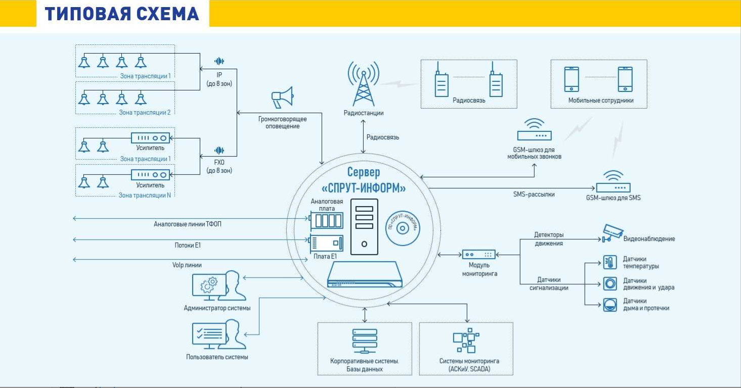 Автономное устройство для оповещения по различным типам каналов АПК Спрут-Информ CU Standart 2Tb 2U